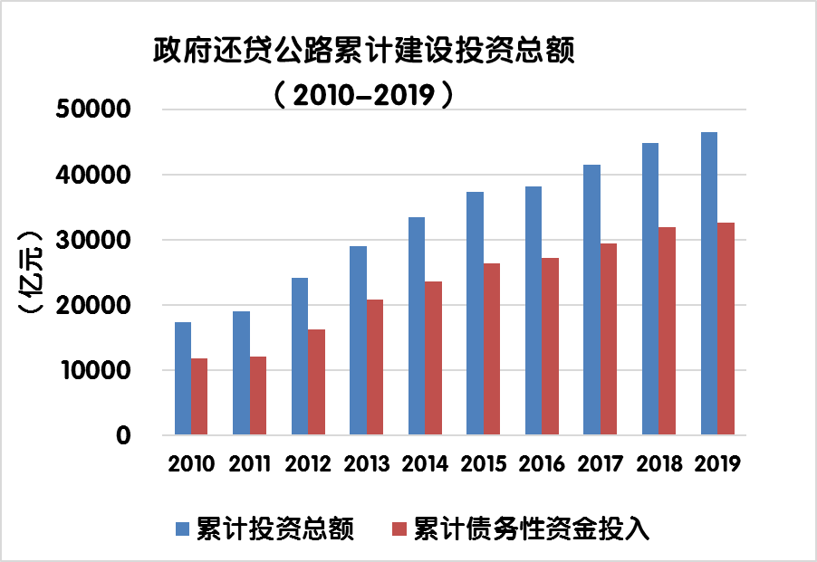 (注:累計建設投資總額指歷年和當年收費公路建設投資額的合計)