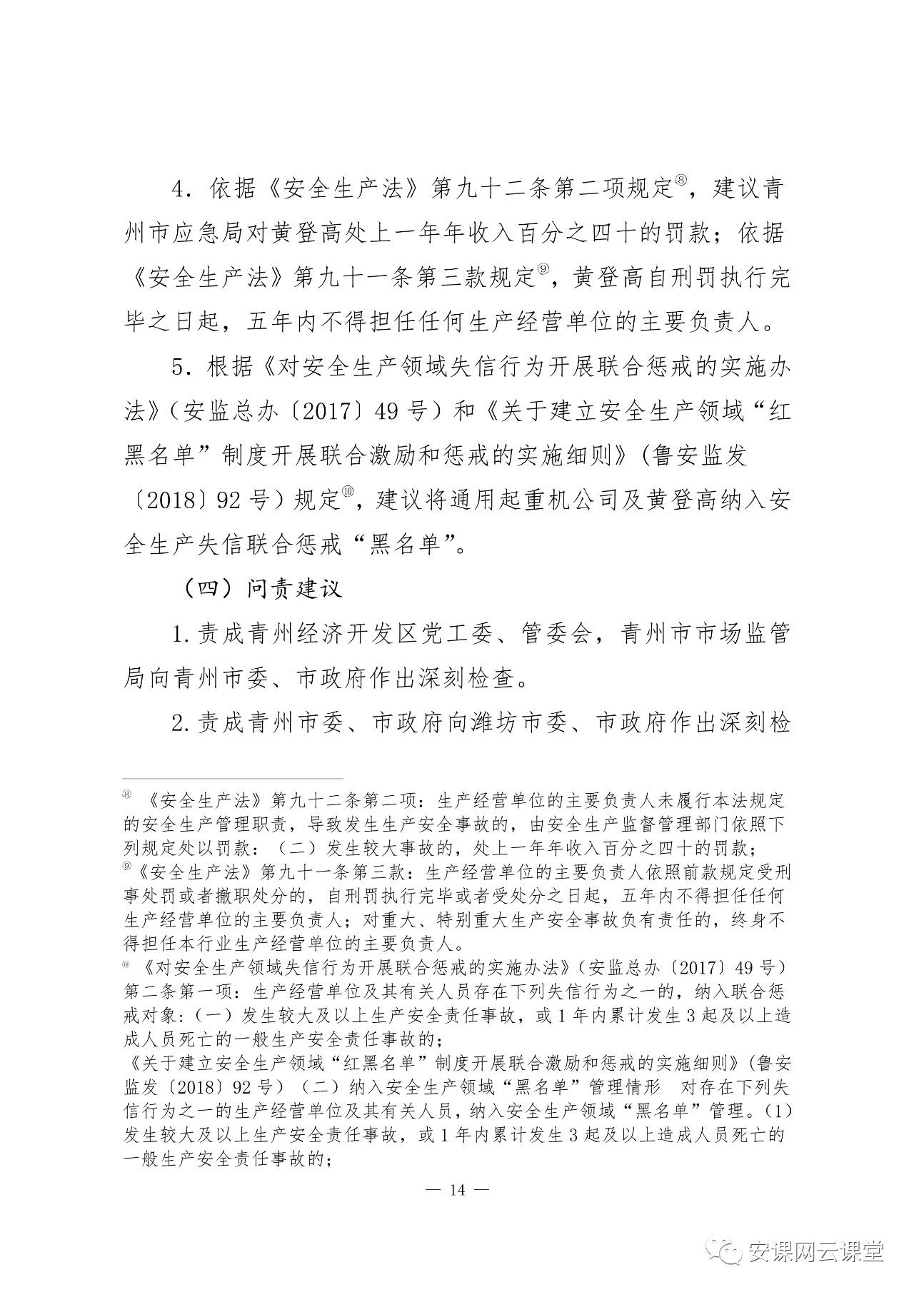 2020年5 月16 日,被青州市公安局采取監視居住強制措施。涉嫌構成重大責任事故罪,建議司法機關依法追究其刑事責任。建議由青州市紀檢監察機關按規定及時給予其相應的黨紀處分。