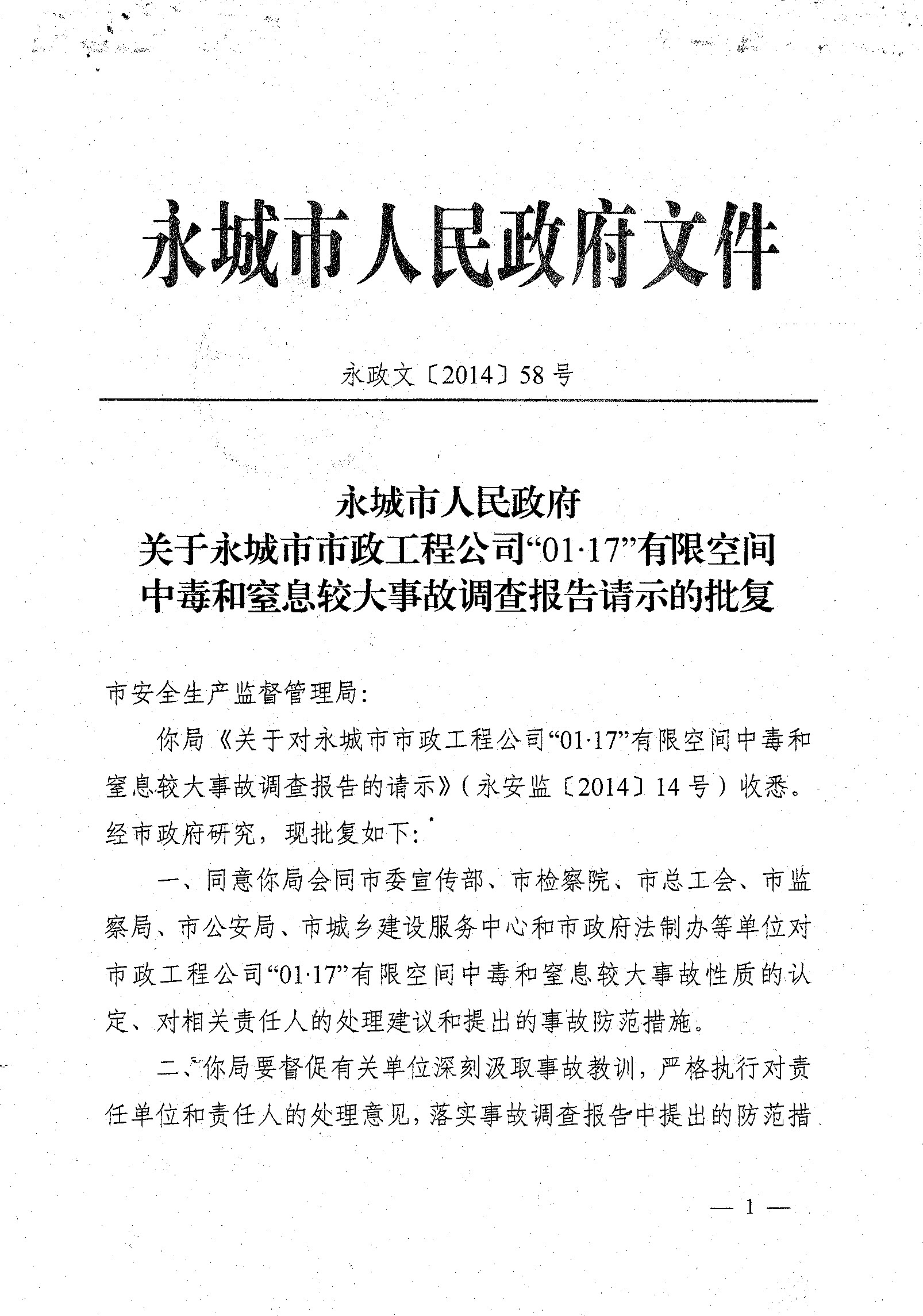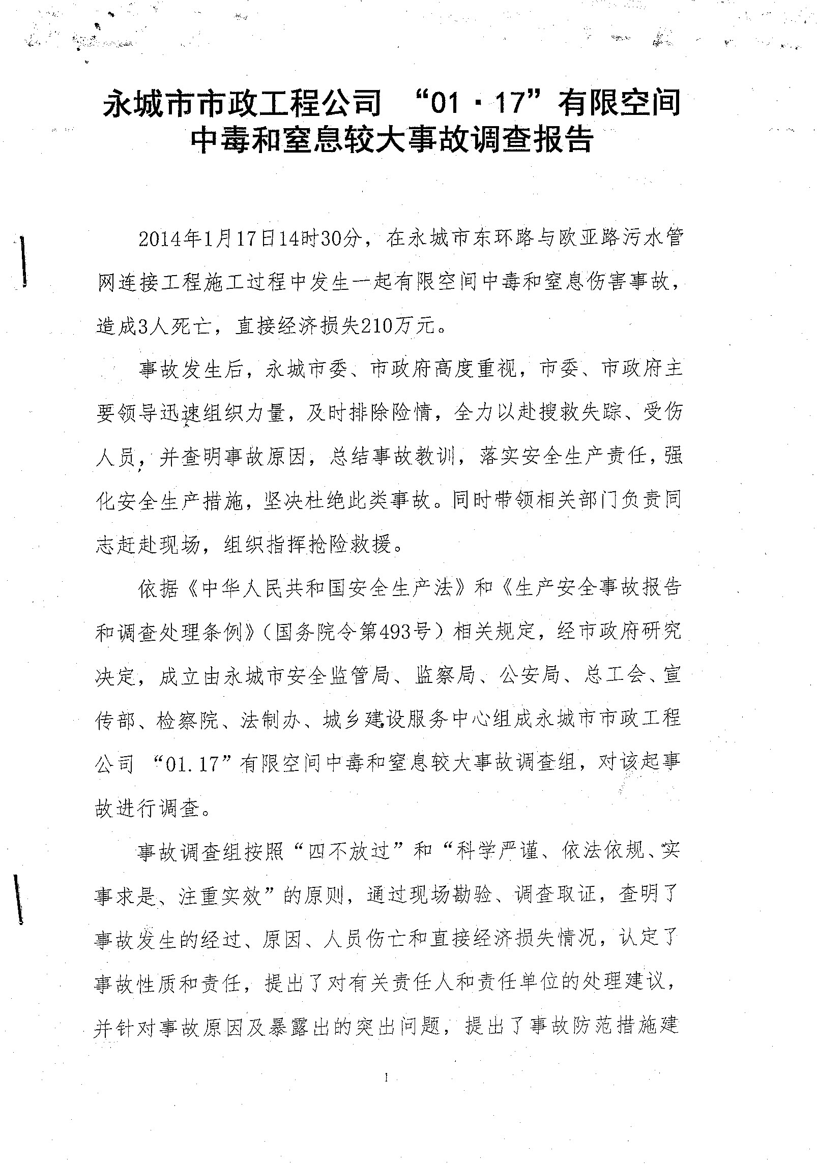 永城市01.17中毒窒息事故調查報告