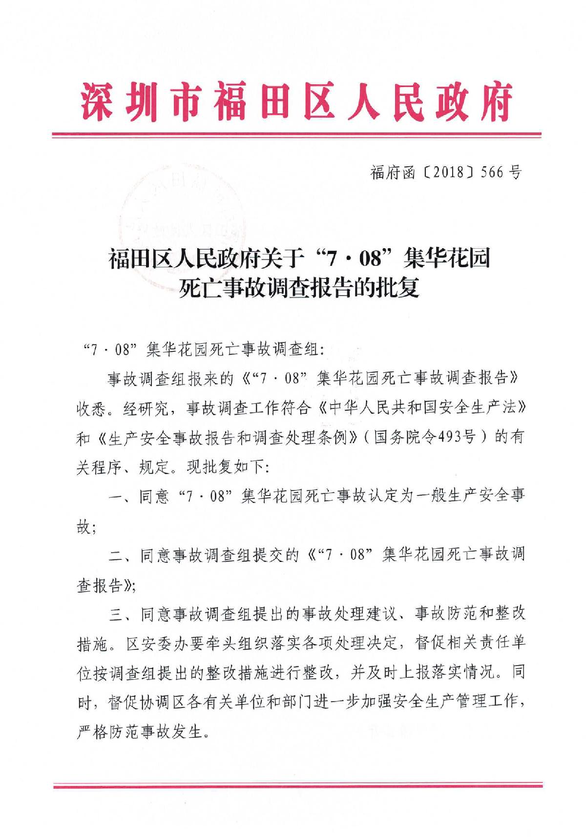 “7.08”集華花園死亡事故調(diào)查報告