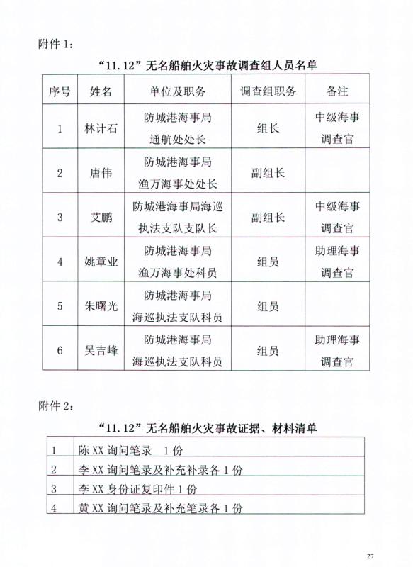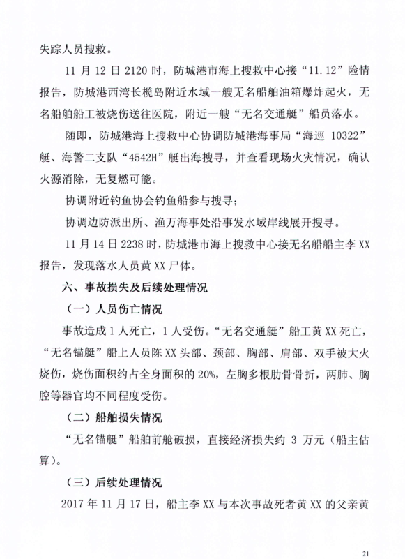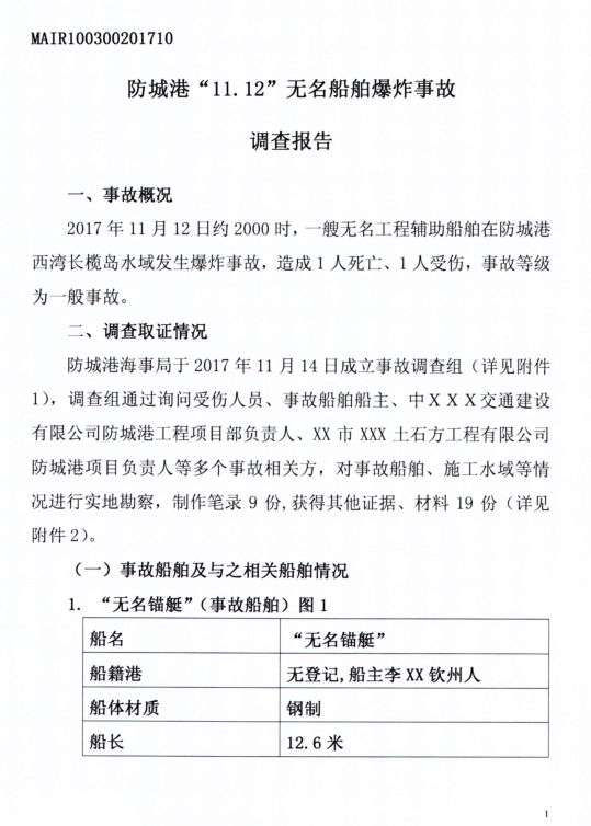 防城港“11.12“無名船舶爆炸事故調查報告