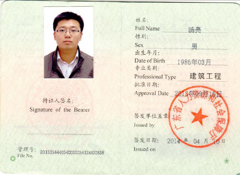 一級建造師 | 湯 亮 | J200399573 | 00380294 | |