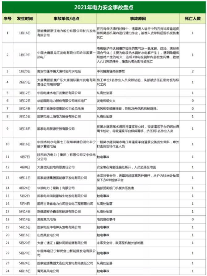據(jù)國際能源網(wǎng)記者統(tǒng)計2021年至今已發(fā)生了24起電力安全事故,造成22人死亡,僅2021年5月全國發(fā)生電力人身傷亡就發(fā)生了事故9起、死亡8人。其中出事企業(yè)包括中國大唐、國家電網(wǎng)等大型電力企業(yè)。