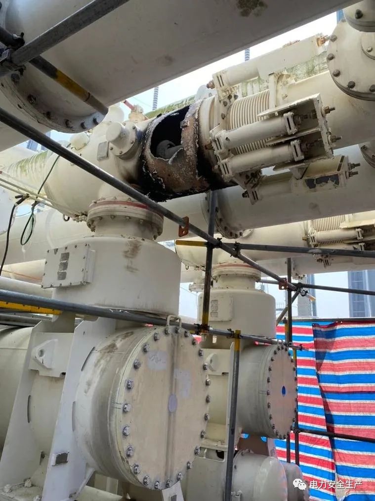 發(fā)生爆炸的電廠345千伏GIS的里的刀閘放電,殼體燒穿了