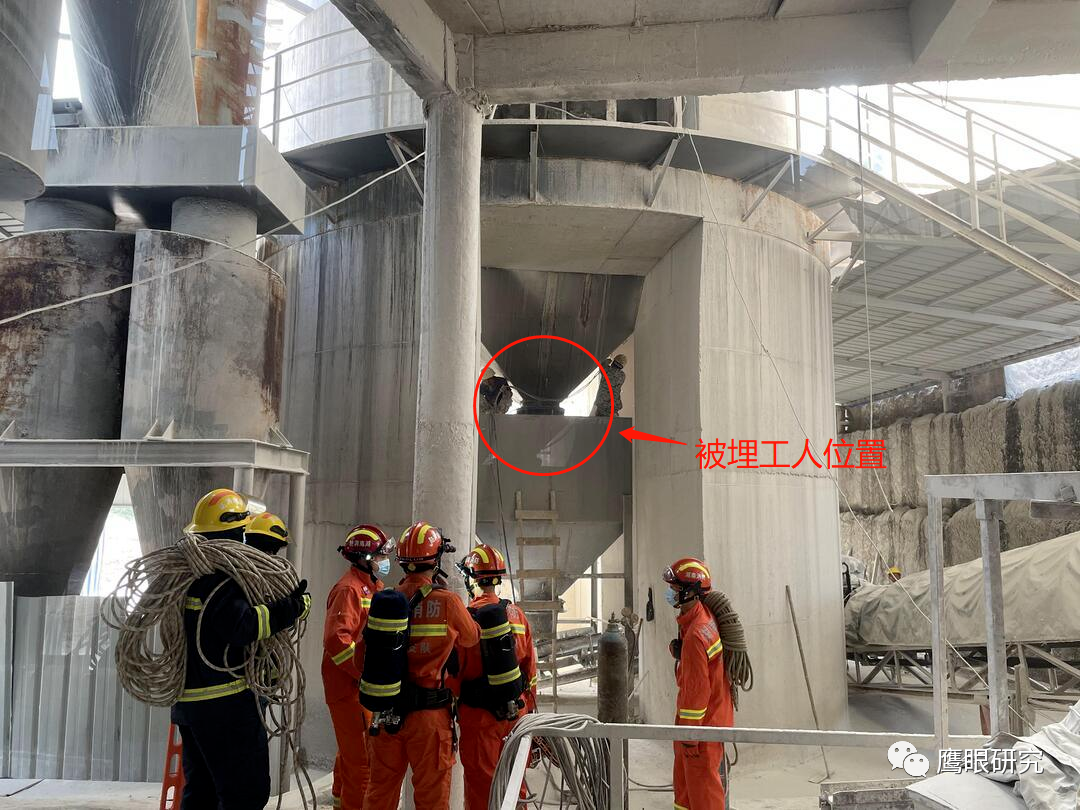 事發(fā)時,被困工人發(fā)現(xiàn)石灰斗罐下料口被堵塞,便進入斗罐底部開展疏通工作,罐壁四周的石灰塊突然崩塌,造成該工人當(dāng)場被石灰料埋壓,埋壓深度約1.7米。